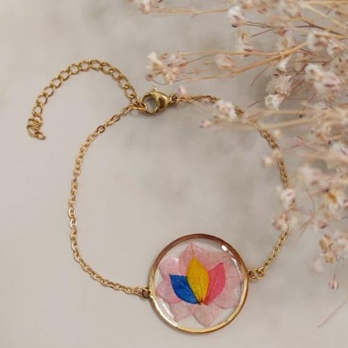 Introducing the Threefold Flame Bracelet, an exquisite handmade jewel crafted from natural flower petals. This beautiful bracelet is not just a piece of art, but also a symbol of harmony, balance, and protection.